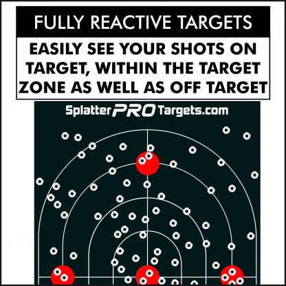 • Our HIGH VISIBILITY splatter targets make it EASY to see your shots at a distance, no more wasting time walking downrange to SEE YOUR SHOTS.