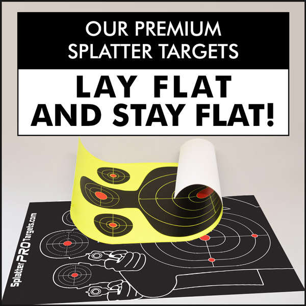 Compare our Splatter Targets to anything on the market. Our targets lay flat and STAY FLAT. If you’ve ever had a target curl up on you when you’re at the range you know how frustrating that can be. Our targets are printed on sturdy 10 pt. board stock, not cheap paper. Our goal was simple. Make the best target on the market and we’ve done that. The Bright White bullet holes are visible in all light conditions and help you quickly get on target and stay on target. Perfect for air guns, rim fire and center fire rifles and pistols. Our targets work great for sighting in shotguns as well.
